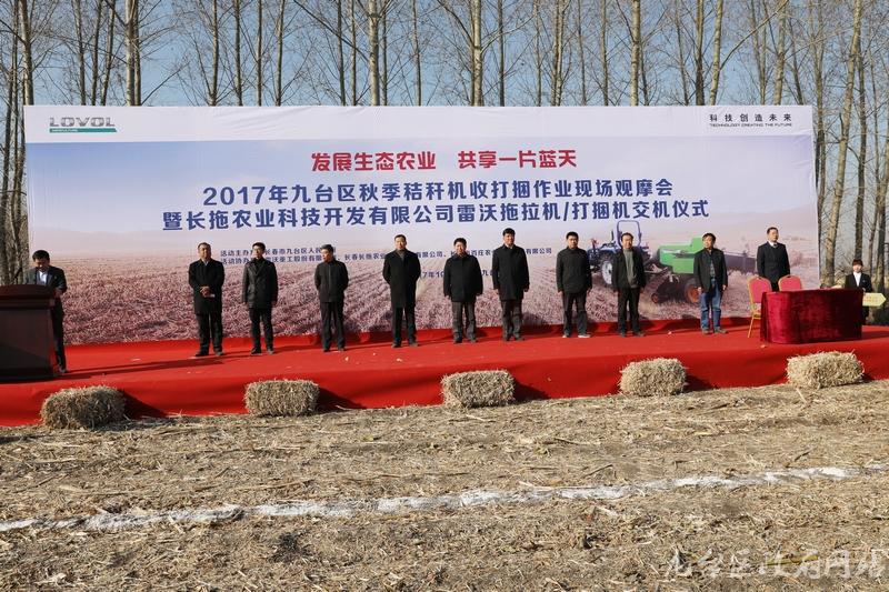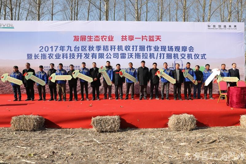 九台区举行2017年秋季秸秆机收打捆作业现场观摩会暨长春长拖农业科技开发有限公司雷沃拖拉机/打捆机交机仪式