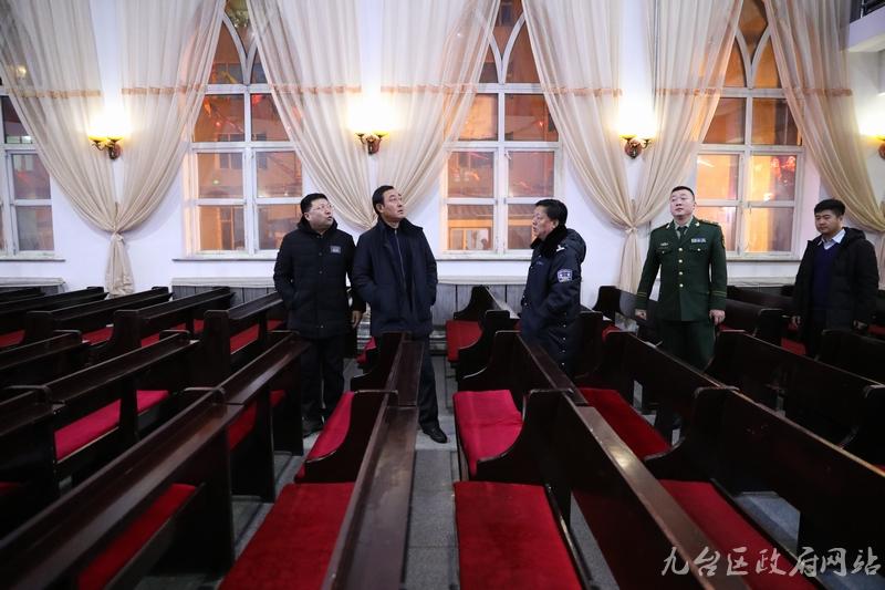 区委常委、常务副区长于海山在检查九台团结基督教会时,向教会负责人详细了解了教堂内部的安全状况,和关于“平安夜”“圣诞节”活动的有关情况。于海山强调,当前正值冬季,圣诞、元旦等节日相继来临,节庆活动也随着增多,由于节日期间人群高度聚集,给安全工作带来一定隐患,因此,各相关部门和教会都要加大防火巡查力度,及时消除各类安全隐患,不折不扣地落实消防安全责任制和各项防范措施,制定应急预案,严防安全事故发生,确保广大人民群众度过一个平安、祥和的节日。