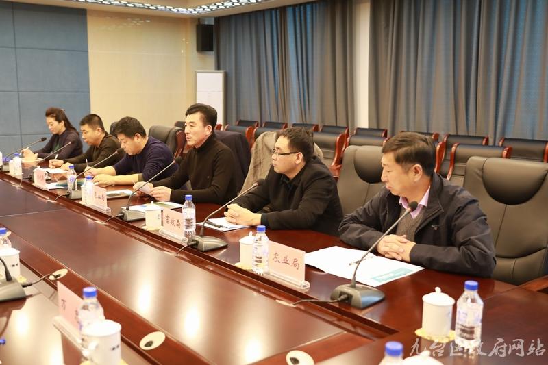 在区委党校南三楼会议室召开的汇报会上,区农业局局长尚洪秋向考核组汇报我区创建省级农产品质量安全县工作。