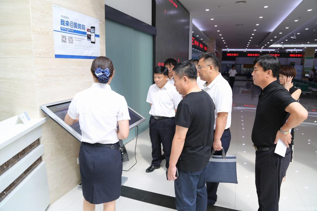 督查调研组实地参观了区政务服务中心,并由区政务服务中心讲解员为来访领导介绍“一门式,一张网”