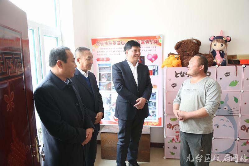 区长李洪亮一行走村入户,与贫困户交谈,了解贫困户在今年以来所取得的帮扶措施和增收情况,李洪亮鼓励贫困户要增强脱贫信心,在相关部门技术指导与党委政府的帮助下,走上脱贫致富之路。