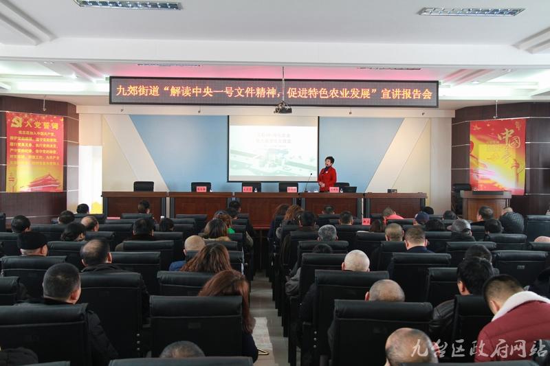为了深入推进农业结构新改革,加快开创农业现代化新局面,利用电子商务平台推动现代化农业建设,以互联网+现代农业为抓手,全力促进街道特色农业发展,使农业农村不断迈上新台阶。2月22日下午,九郊街道“解读中央一号文件精神,促进特色农业发展”宣讲报告会在区九郊街道五楼会议厅举行。
