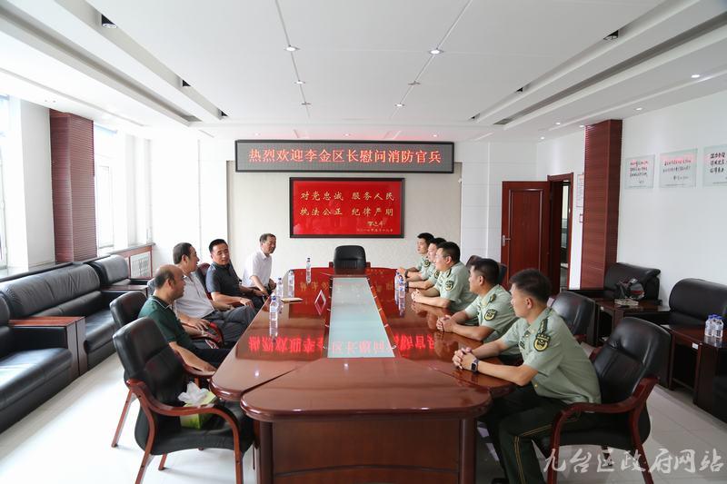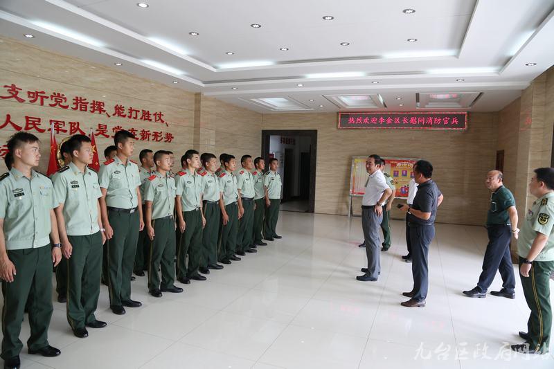 7月27日上午,副区长李金带着对人民子弟兵的深情厚意,以及节日的祝福来到消防大队、武警部队走访慰问官兵。