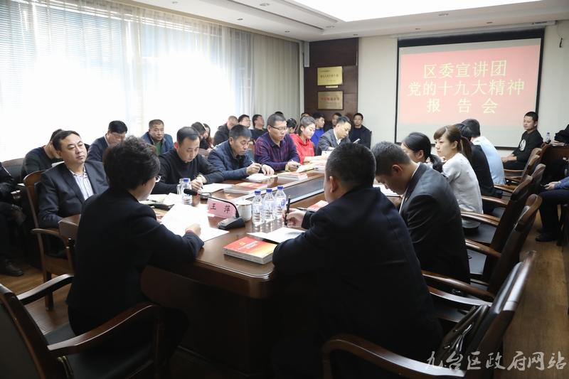 区委常委、宣传部部长王萍在宣讲中,着重围绕十九大精神,把习近平新时代中国特色社会主义思想确立为党的指导思想,实现了党的指导思想又一次与时俱进;十九大深刻总结了过去五年的历史性成就和历史性变革等内容进行细致的讲解。王萍希望与会人员要在“学”上下功夫,在“懂”和“通”上下功夫,认真领悟学习,同时大力宣传宣讲十九大精神,奋力推进习近平新时代中国特色社会主义思想在九台区生动实践,为建设“五个九台”做出新的更大的贡献。